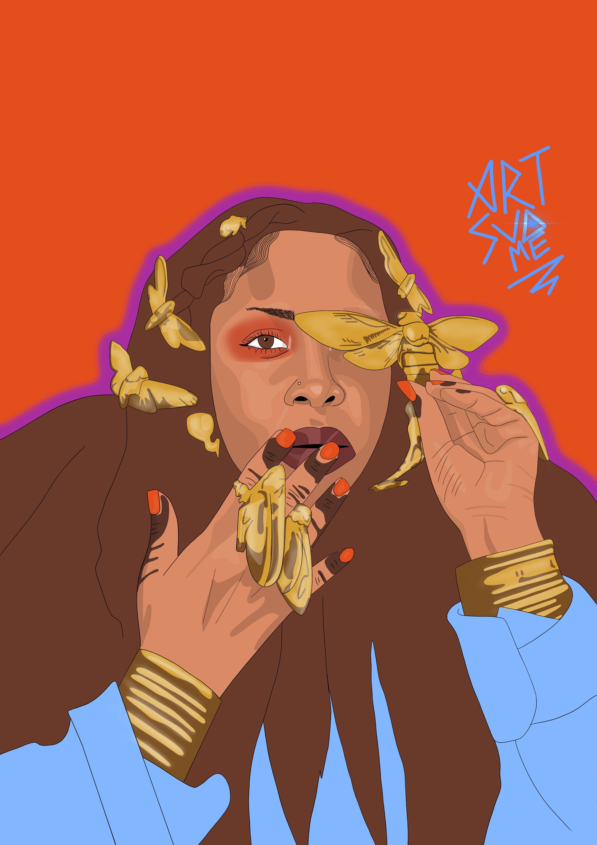 Cherise is a visual artist, illustrator and designer based in South London. Cherise applies a range of mediums from, digital art, charcoal, textiles, printmaking and collage to bring to life striking portraits. Cherise explores her own journey of healing and takes inspiration from African and Caribbean culture and the representation of their people embracing elements of love, power, faith and hope. She aims to depict the beauty and intensity of black people through her work whilst also exploring the importance of mental health within the black community. She has exhibited her work in the V&A, for Nike/Jordan Brand, Zari Gallery and more. She had her debut solo exhibition March of 2022.